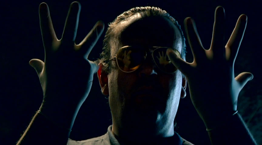 One of the weirder films in recent memory, Hunter operates as a genre-hopping vehicle of sorts for former child actor Ron Becks, also seen in Samurai Cop 2: Deadly Vengeance. That film's director, Gregory Hatanaka, also helmed this one about a no-nonsense Los Angeles cop described on the packaging as both "Mystical Cop. Deadly Force. Champion of People" and "A cop, a saint, a vigilante, a spirit." That should give you an idea that this isn't the most lucid film on the planet, but it somehow involves a nefarious general (played by one-shot 007 George Lazenby), his evil major sidekick (Maniac Cop's Laurene Landon), a women's counselor lawyer played by cult staple Kristine DeBell (named Allison Goodwill, if you can believe it), and a runaway and accused prostitute named Kelly (Magda Marcella) suffering from traumatic flashbacks who's intimately connected to a string of killings. Sometimes wearing anaglyph 3-D glasses, Hunter drifts through all of these characters and story threads in between random fantasy sequences, with incredibly odd green screen work turning up every few scenes with amusing regularity. It's a shame this one never got four walled into a significant number of theaters, since the sheer insanity might have made it a successor of sorts to The Room thanks to its cracked vanity project attitude and earnest attempts at mystical philosophy (especially the "transcendent" ending, which has to be seen to be believed). Becks even contributes to the soundtrack - because why not? - and you get an avalanche of onscreen text trying to explain the whole thing, with varying degrees of success. The Cinema Epoch DVD looks pristine, of course, with 5.1 and 2.0 audio options, the trailer, and a 7-minute interview with producer Salih Mayi about his career and the inception of the project. Enter at your own risk!