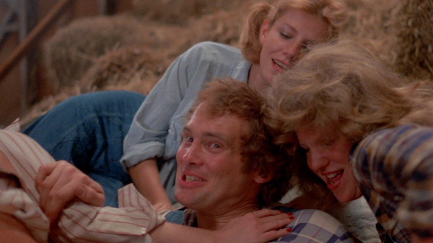 1978 was a busy year for New York adult director John Christopher, who turned out no less than four features in twelve months. Two of those are collected in one Vinegar Syndrome Peekarama release, starting with the period western The Pussycat Ranch. A weird French landowner is threatening to foreclose on the title ranch, which is home to three nubile beauties (Samantha Fox, Daisy Mae, and Heather Young), their protector Ma Belle (Molly Malone), and dim-witted ranch hand Johnboy (Roger Caine again) whom the girls enjoy molesting out in the barn. Things get even more complicated when notorious outlaw and horndog Billy the Kid (Eric Edwards) shows up on the premises with his sidekick Snake (Joey Silvera), which leads to a tiny crime spree and the seduction of the family lawyer. Oh, and would you believe the whole thing is scored with disco music and pilfered tracks from Once Upon a Time in the West?? Bearing no relationship to the notorious real-life cathouse, this is a pretty typical example of that odd subgenre of '70s porn westerns, though that nutso soundtrack definitely sets it apart a bit. Another film from the VCX home video stable, this one has been given a sparkling fresh makeover and looks great here despite some baked-in technical issues like frequent out-of-focus shots and one camera that appeared to scratch the film as it was being filmed. And if that isn't enough disco, you'll get plenty more in Here Comes the Bride, which takes place in a snowy suburban neighborhood where we first see happy married couple David Morris and Samantha Fox get intimate in front of the fireplace. That leads to a string of flashback vignettes showing how they met (she flirted with him while he was shoveling snow, then went off to have a morning kitchen session with David Christopher and, yep, Roger Caine again, this time scored with disco bagpipe and fiddle music. From there it's a long, carnal path to the wedding day with participants like Silvera, Heather Young, and Clea Carson showing up, not to mention an orgiastic bridal shower and a, uh, unique bit involving Morris and a tub of buttered popcorn at a drive-in. A pretty impressive showcase for Fox (in one of her first starring roles), this one was also out before from VCX but looks much better here, and its theatrical trailer is the sole extra.