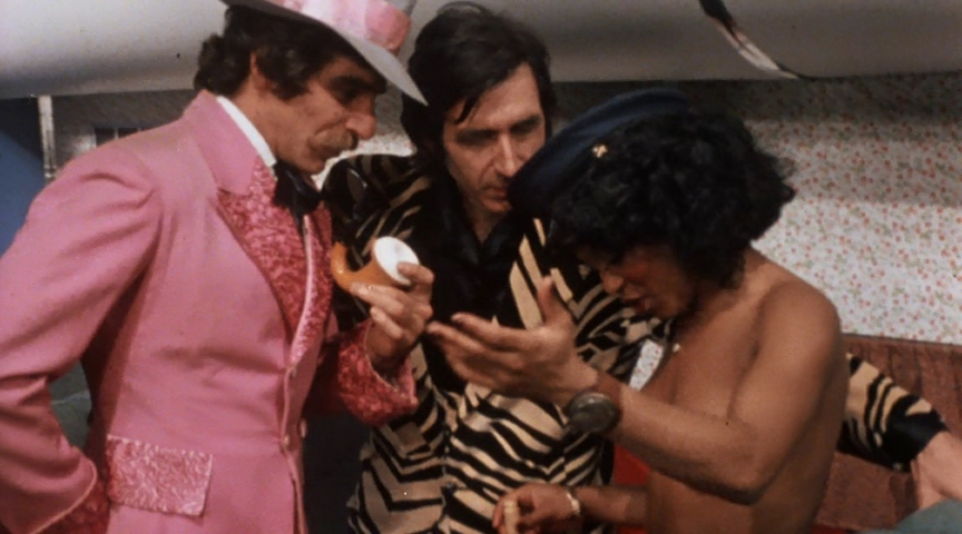 One of the most fascinatingly odd double features in Vinegar Syndrome's unpredictable line of Peekarama vintage adult double features brings together a pair of '70s mystery-themed offerings that mix whodunit with bodily fluids to truly bizarre results. First up is the time-tripping Sherlick Holmes from 1975, which features Harry Reems as a horny take on Arthur Conan Doyle's legendary sleuth along with director-actor Zebedy Colt as his right-hand man, Watson. After a freaky cartoon opening we're taken Edwardian England where the men are conferring over their newest case while being simultaneously