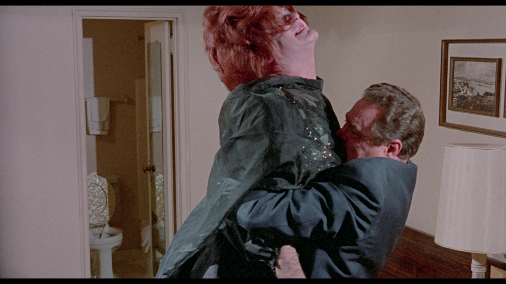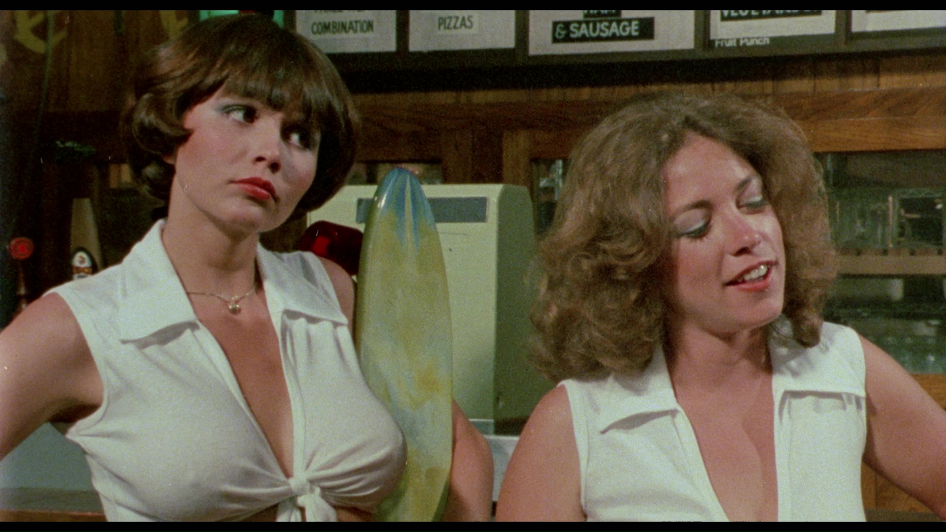 Far from roughie territory but just as weird and worthwhile is another 1975 adults-only film, Confessions of a Teenage Peanut Butter Freak, which is probably best known for its eye-catching poster design used for a widely distributed T-shirt. It was also the most potent trailer featured on the second volume of Something Weird's Bucky's '70s Triple XXX Movie House Trailers series, which inspired people to track down some pretty ragged-looking VHS copies (sometimes under the title She Can't Get Enough and eventually sourced for equally drab DVDs from Gourmet Video and Alpha Blue). As much a counterculture comic gem as a traditional X-rated title, it's an outrageous confessional delivered by Billy (co-writer and director Zachary Strong, a.k.a. Zachary Youngblood) to a sympathetic gas pump attendant, Helen Madigan, about his lifetime of sexual misadventures and his ongoing kink for peanut butter. It all started with an outrageous early incident involving his aunt, bodily emissions, and a peanut butter sandwich, which leads to a raucous three-way involving his cousin and a comparable confession from Madigan. "Special guest star" John Holmes (who has two scenes, one of them sexual) and Constance Money are more famous than the two main stars, but fortunately Young and Madigan are both great here in appealing, demanding roles that require more range than usual. The crazy, whiplash attitude here is really infectious as the viewer really has no idea where it's going from one sequence to another, and the Vinegar Syndrome DVD is a real revelation as it not only looks great but is also completely intact; the packaging notes it's compiled from both 35mm and 16mm elements, including the full peanut butter commercial opener scissored from most versions. Both bonus features are audio-only and well worth checking out, a pair of lengthy phone interviews (conducted by an uncredited Casey Scott) with Youngblood and assistant director/assistant editor Jo-Anne Surtees. The Youngblood one is a real stunner as he starts off talking about his less than stellar time in the military, his unorthodox first adult film excursion (which hasn't been documented anywhere), and his journey through filmmaking including stories about distribution, working with fellow writer Jerry Abrams, his propensity for humor, and several of his other films including Hot Teenage Assets and Visions of Claire. The Surtees track is a more straightforward reminiscence about the production of this particular film (she's still friends with Young) with chat about coordinating the rock club footage and feeling very "Alice in Wonderland" working in the industry.