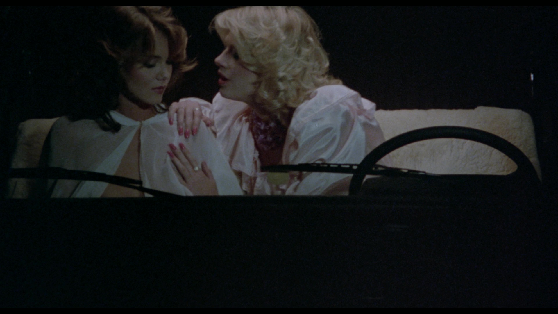 tattooed, bisexual hippie prostitute. He shares the angry outcome of the story with his bedmate, but it turns out that's just the start when they decide to go to a nearby sex party and... uh, that fills up the rest of the movie. Moore (who only appeared in a handful of other films) has obvious performance issues that a mediocre editor just barely tries to conceal, but it's a slice of sun-splashed, unexpectedly hostile weirdness that refuses to coalesce into any sort of coherent whole. Up next is Nattie's Pleasure Palace, an old-timey look at the goings-on at a whorehouse where... well, the audio's so poorly recorded it's hard to tell, but it has something to do with a guy trying to get one of the hookers out of the business while the other working girls bathe together, play cards, and service their new landlord who's inheriting the property from his dad. The whole cast is pretty rough on the eyes, but at least it runs under an hour. Finally, The Girls from Wam-Bam follows a pair of girls from a collection agency as they work their way through a string of "pay or get laid" schemes with a bunch of guys including Moore again and a father and son at a farmhouse. This one's actually the most entertaining of the bunch as it moves pretty quickly, crams a surprising number of sex scenes into its brief running time, and has a hilarious stolen soundtrack including prominent use of "I Love How You Love Me" decades before Twin Peaks: The Return.