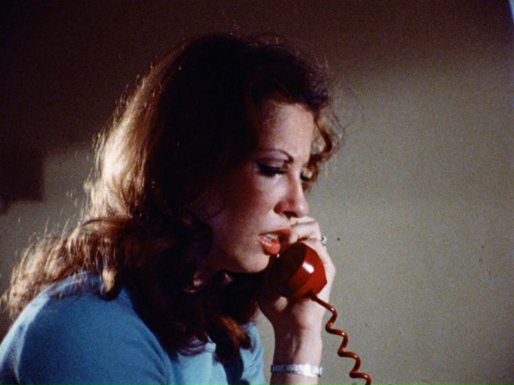 It's hard to believe there was a time when obscene phone calls were actually a cause for concern, but long before the days of caller ID, hapless citizens of the '70s (and, to a lesser extent, the '80s) were frequent harassed by foul-mouthed strangers at all hours of the day. The slimy trend popped up in mainstream films in everything from Black Christmas to High Anxiety, so it was natural to work it into adult films, too. One of the prime examples is 1976's Night Caller, a dark and disturbing Anthony Spinelli film about an isolated, heavily-accented sad sack named Bobby (David Brook) who becomes fixated on watching the carnal activities of his neighbor, Carol (Monique Starr), and her husband (Ken Scudder). He starts spouting lascivious come-ons to her over the phone (and talks about panties a lot), a process that spills over into others around him including a cross-dressing prostitute. However, when he decides to make contact with Carol in the real world, things start to get messy. A visually dark, foreboding film, this one sure feels like a horror film even if the plot doesn't quite go all the way into that territory; it could easily be programmed next to more overtly violent fare like Forced Entry as well as something like 1980's Maniac or Don't Answer the Phone. Brook really gives it his all here as the slimeball protagonist, with the phone call sequences actually delivering more queasy intensity than the bona fide sex scenes. Previously seen in murky and frequently censored editions, Night Caller looks much better than ever before on Vinegar Syndrome's no-frills DVD release; the packaging notes that this is newly restored in 2K from "16mm vault elements," and though the sound is still pretty crackly and flat, it's great to see it in such vastly improved quality. The nerve-jangling electronic soundtrack is reminiscent of Lipstick and a real standout, too.