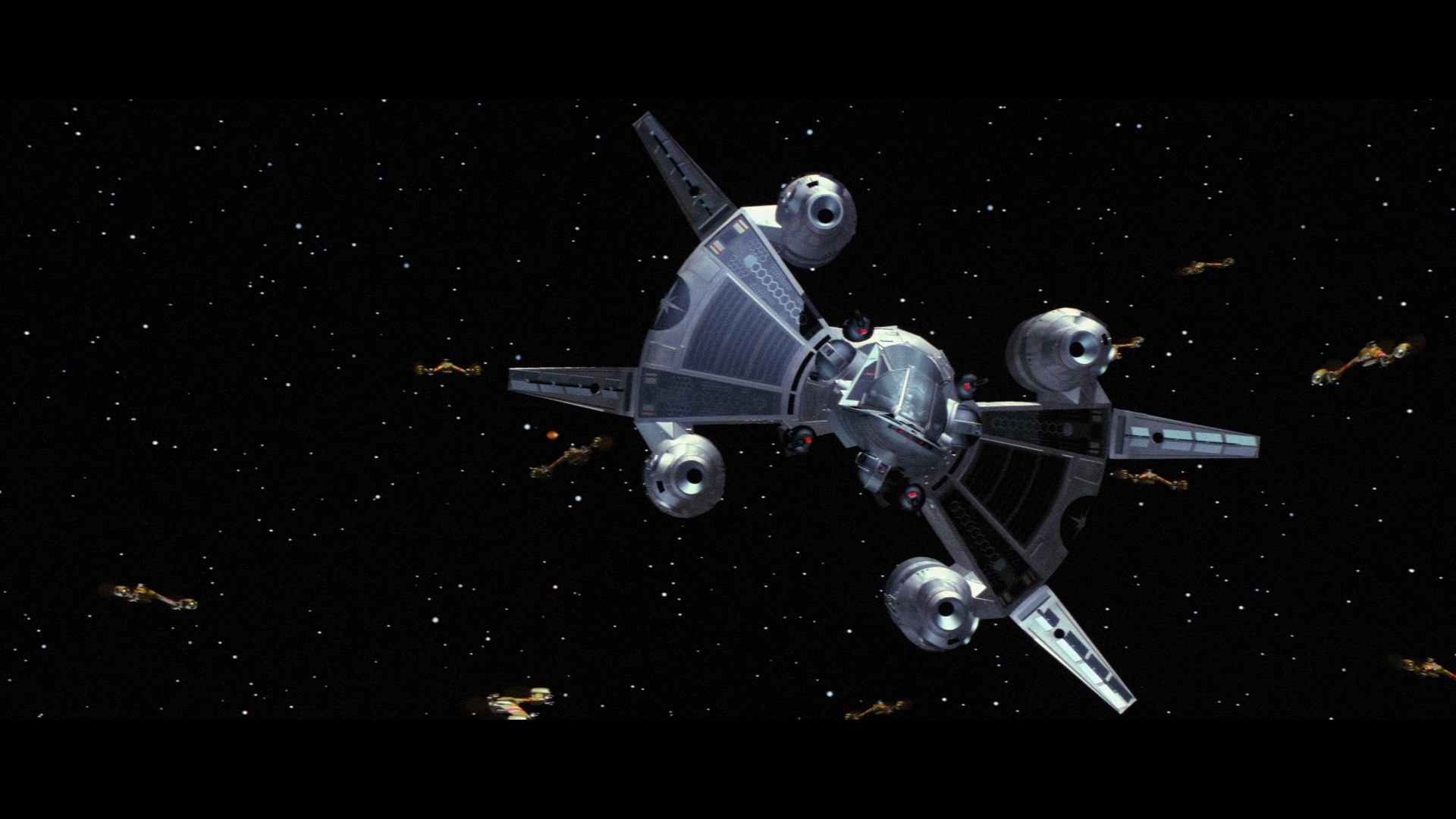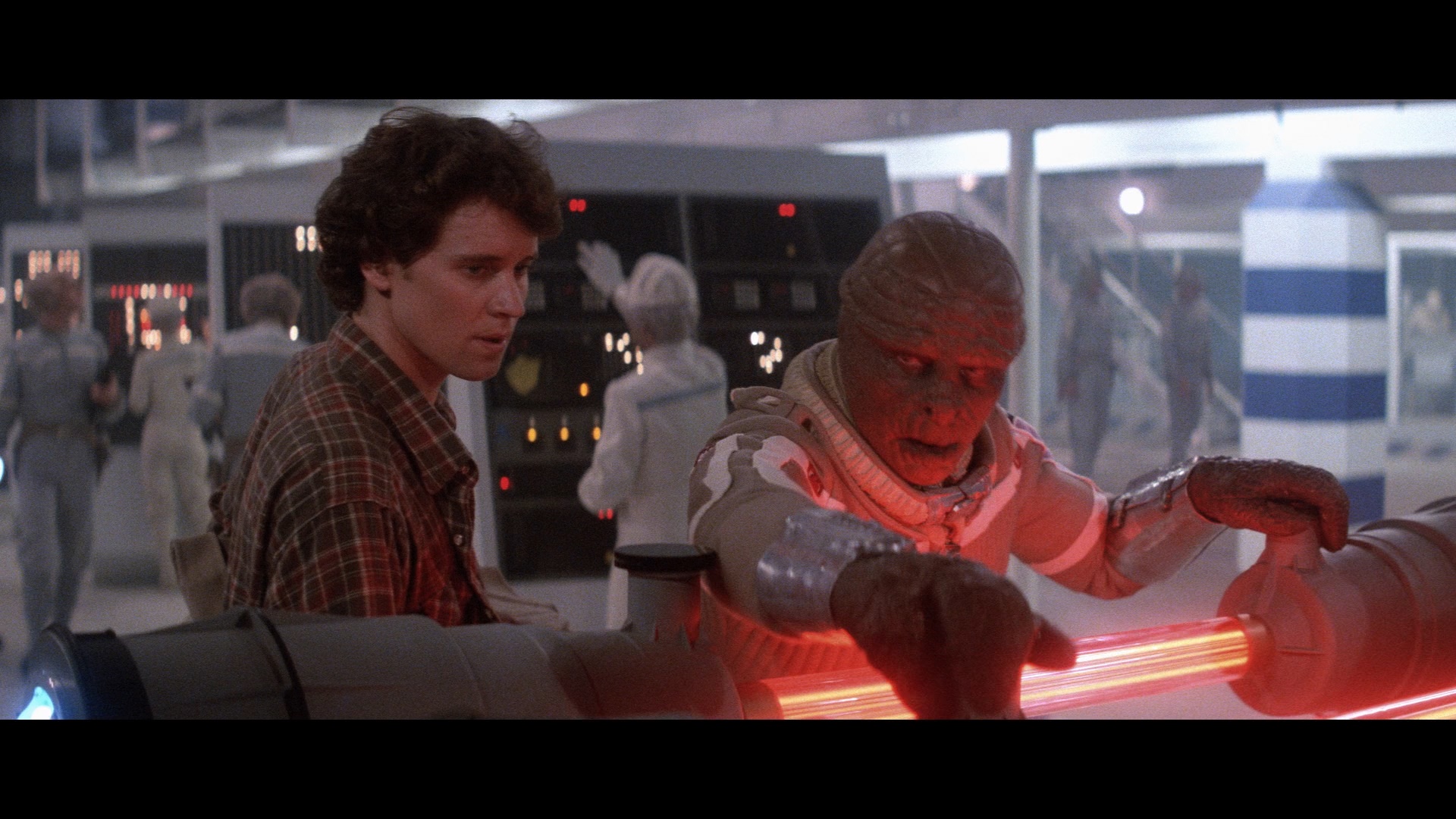 In 2020, Arrow Video revisited the film for a greatly expanded special edition featuring the one thing we've all been waiting for: a fresh 4K scan from the original camera negative. In terms of color timing it's pretty close (mainly distinguished here by the white levels that no longer threaten to blow out in many shots), but the real difference is the absence of that waxiness and edge enhancement that pays off here with far more natural textures (especially in motion, though the comparisons below will give you an idea). Framing adjusts slightly with a very minimal loss by comparison on the edges at times, while the proportion of the image looks better and less squeezed than the earlier one. All in all, fans should be delighted with the presentation here. Audio options includes DTS-HD MA English 5.1 and 2.0 tracks plus, for the first time on home video, the 4.1 mix prepared for 70mm theatrical screenings. As with Arrow's edition of The Thing, that's a major plus here for audiophiles with a robust but period accurate mix that sounds beautifully full and dynamic here; for many, this will likely be the go-to option from now on. It's worth noting that the 2.0 track is the same mix heard on the 25th anniversary edition, which was missing a quick music cue at 28m40s, but it's thankfully restored here on both the 5.1 and 4.1 options. English SDH subtitles are also included.