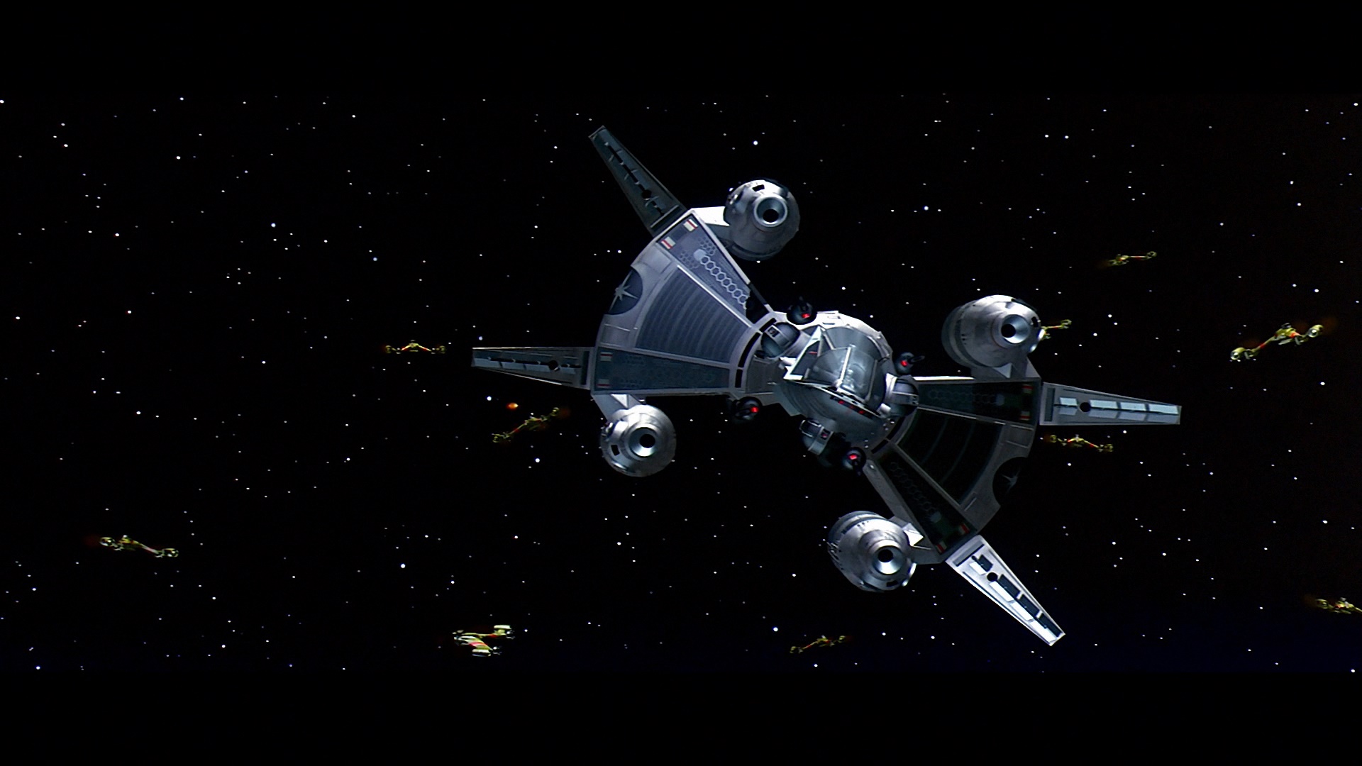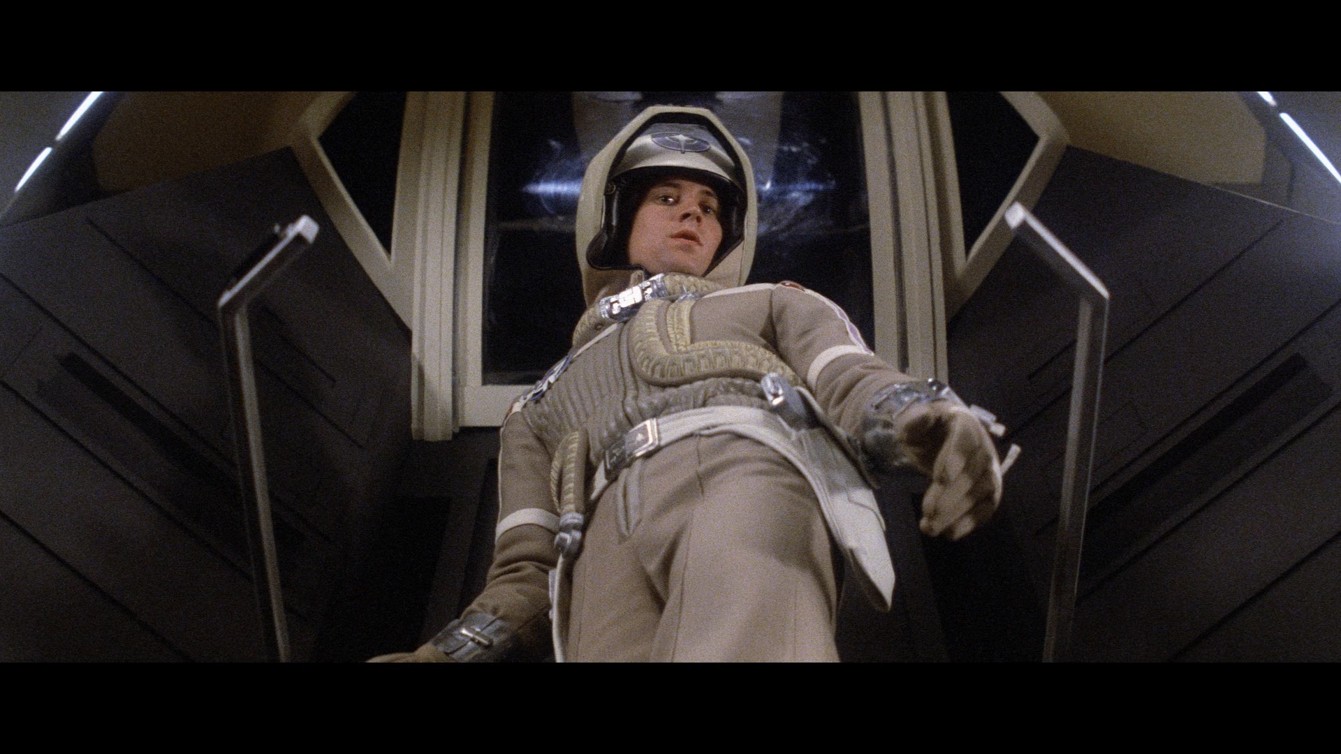 mingling with other up and comers while auditioning and finding her groove with Guest, her limited experience with arcade games, and her particular amusement playing the scenes with Alex's beta unit. Then Safan appears for "Into the Starscape" (12m20s) to discuss his tackling of his first big orchestral score, trying to compose to preliminary computer guides, and the march idea that led to the creation of the film's classic main theme.