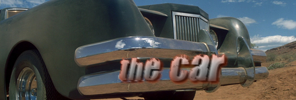 at the same time, The Car was pushed into production by Universal as "Jaws on land," attempting to come up with a movie to tide audiences over in 1977 until the studio could turn out a bona fide sequel to their big shark hit one year later. For good measure, you get a big dose of Spielberg's Duel here as well courtesy of a supernatural vehicle straight from the bowels of hell, determined to mow down anyone in its path.