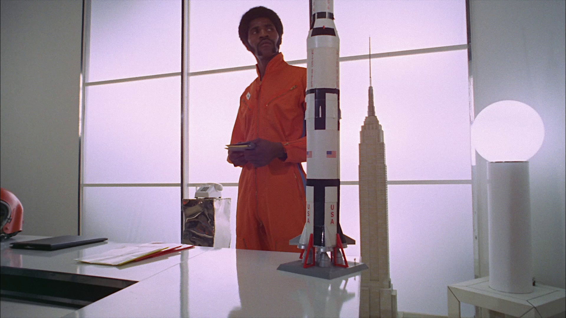As the opening moments tell us in bold letters, this is a film "produced, written, directed by and starring Christopher St. John." And we first see St. John, the fourth-billed cast member from Shaft, accompanied by driving funk music as George, part of a D.C. cop squad enlisted with beating up and suppressing a bunch of angry protesters at a muddy construction site, complete with a water balloon battle(!). By the time he comes home and sees his antics on the nightly news, he's in no mood to hear about how his 14-year-old daughter Valerie has been "screwing in the garage" from his disgruntled wife (St. Peter). On his next night drive, a grouchy George imagines himself as an astronaut at NASA (complete with awesome huge sideburns) before busting in on a couple of jive-talking crooks busy eating a greasy whole chicken. Their taunt of "black pig" rings in George's ears long afterwards as he has a hard time juggling grief over his mother's recent death and the demands of his guitar-strumming mistress (Kelly, also in Trouble Man and Cool Breeze the same year), who also figures in some of his wild fantasies including one in which they run naked through the woods