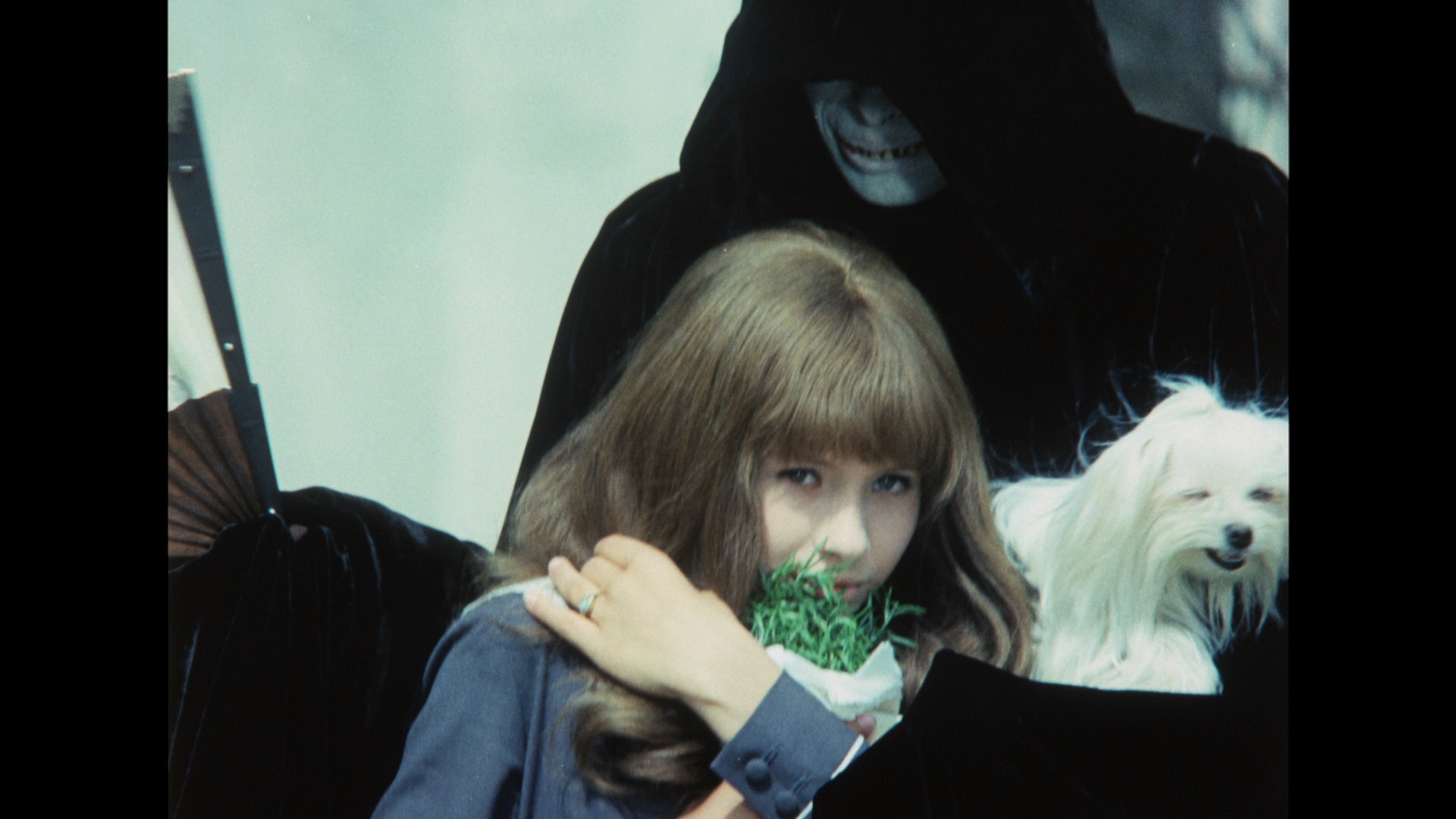 Five years later in 2015, the film finally got its due in the United States from Criterion courtesy of separate Blu-ray and DVD releases. The major news here is that it's the first time English-speaking viewers could watch it with the Valerie Project score, with both the film and music at correct film speed for the first time as well. The DTS-HD MA mono audio for the original soundtrack sounds excellent, the fullest and cleanest it's ever been to date, while the Valerie Project score is presented in standard two-channel Dolby Digital. (A pity it's not lossless as well, but it still sounds very good.) The new HD transfer looks much more detailed and textured than any of its predecessors, with the outdoor scenes in particular offering a wealth of fine layers of shading and depth. Unfortunately the entire color has shifting radically to the teal side, one of the earlier examples of an irritating, destructive video plague that has afflicted other Blu-rays ranging from The King and I to Je t'aime, je t'aime. The problem here is that the extreme color shift demolishes any pure white in the film, which is deeply destructive to the importance that hue plays throughout as well as the original sun-blasted look that now seems to have turned into a constant state of dusk.