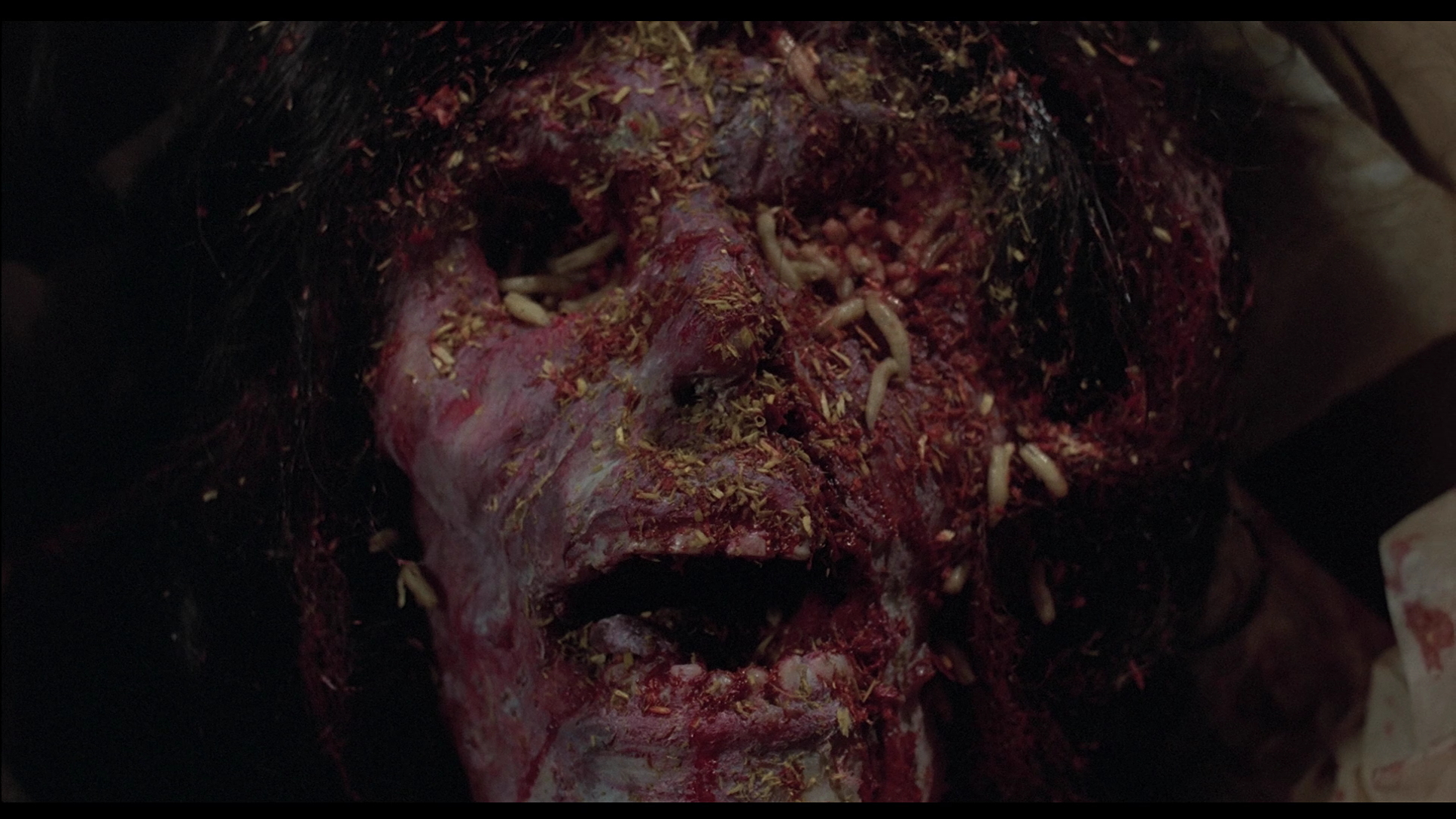 Of all of Walker's horror output, this one has easily fared the worst on video before its Blu-Ray resuscitation. The Anchor Bay UK and Media Blasters versions were taken from a sick-looking open matte transfer with very weak colors (click here for a sample shot comparable to one of the new frame grabs here) and even weaker black levels; it was a minor step up from the comparatively scarce VHS versions, but not by much. The Blu-Ray version will definitely come as something of a shock, as it reveals t
